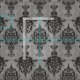 Linda Baysinger Peck's hand drawn, gothic black damask design, on gray faux stone texture.