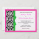 Having your Damask Green Bow With Hot Pink Wedding Invitation match the theme of your party is a great detail that your guests will appreciate. The thoughtfulness of a consistent party theme is often appreciated and can show your guests that you can host a cohesive event.