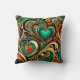 Damask Hearts Gold Teal Coral Repeat Pattern Throw Pillow