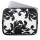 Damask laptop sleeves with floral design in black and white that protects your laptop, netbook, or tablet in style.