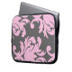 Damask laptop sleeves with floral design in pink and gray that protects your laptop, netbook, or tablet in style.