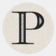 Damask Letter P - Black Classic Round Sticker