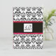 DAMASK MONOGRAM,black white, red burgundy Invitation