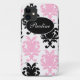 Custom monogram iPhone 5 cases with pink and black damask background will protect your phone in style! Add your initials or your name.