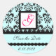 DAMASK MONOGRAM,pink fuchsia blue Classic Round Sticker