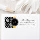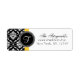 Monogram F Wedding Invitation Return Address Label with black and white damask and yellow accent colour. Customize with your monogram initial, name and address details. Choose the background color and monogram color too. Copyright Elke Clarke and Licensors.