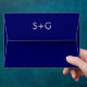 Damask navy blue and coral monogram wedding envelope
