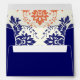 Elegant damask motif navy blue, coral orange monogram wedding envelope with your initials on the top flap. A modern yet classic monogrammed wedding design with a retro flair. A delicate wedding design with a vintage feel to it, perfect for a contemporary or traditional spring or summer wedding.