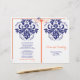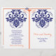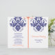 Elegant damask motif navy blue, coral orange folded wedding ceremony and party program. A modern yet classic wedding design with a retro flair. A delicate wedding design with a vintage feel to it, perfect for a contemporary or traditional spring or summer wedding. You will have to fold it in the center. Choose only this type of paper-value as it folds well.