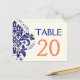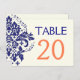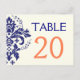 Elegant damask motif navy blue, coral orange, ivory wedding table number postcard. A modern yet classic wedding design with a retro flair. A delicate wedding design with a vintage feel to it, perfect for a contemporary or traditional spring or summer wedding.
