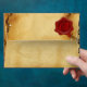 DAMASK PARCHMENT, RED WAX SEAL MONOGRAM ENVELOPE