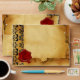 Elegant,classy damask with red wax seal and old aged parchment effects by Bulgan Lumini (c) Cool and artistic design easy to customize with your initials and own text for wedding announcements,save-the-date cards,thank you cards ,sweet 16, bridal showers, birthdays,office holiday parties,anniversaries engagement showers, or just about any event you wish!