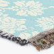 A quality printed throw has its advantages. This is a much finer weave throw than its loopier cousins, and though lighter, it is worth the investment for custom room accessorizing. The back is much prettier than the typical brown, and the fringe on the long sides very vivid, the selvage nicely done. Before photographing, I washed the throw in cold water, delicate, with a thicker woven throw the same size. On tumble dry low, this throw was dry in half the time as the other. This is a very practical quality if you use throws for furniture covers or to wrap up in frequently. The sleekness of the fabric makes it a great layer for accenting or protecting without the feeling of sitting on too much stuff. Perfect for napping or when you feel a light chill coming on. The color printing is beautiful and on this fabric, matched the design and color of my Photoshop image. This is an advantage for blending room fabrics and colors. The fringe on the short sides prints the colors from the design image and therefore varies from the side fringe. I streaked a white fractal line through the plaid pattern to give the illusion of weaving. This printed as crisp as an illusory thread, and put some white in the short side fringe, showing another advantage of print vs loomed- for artistic purposes, line lines, detail, and color integrity can be planned and preserved. My loomed throws have color limitations and more of a needlepoint texture. Print throws reproduce an exact image. The throw felt a little stiff straight out of the package, but this went away in the first delicate wash. Of course I searched the wash water for ink or bleeding and there was none.