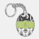 Damask Pattern, Black and White Damask, Monogram Keychain