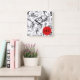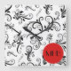 Damask Pattern, Black and White Damask, Monogram Square Wall Clock