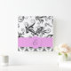 Damask Pattern, Black and White Damask, Monogram Square Wall Clock