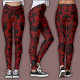 Black & Red Wine Leggings, featuring an intricate, high-contrast swirl damask pattern.
