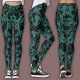 Black & Teal Leggings, featuring an intricate, high-contrast swirl damask pattern.