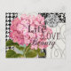 Beautiful! This pretty collage is made up of several black and white patterns, a large vintage flower, and the words Life Love Beauty. A gorgeous addition to a beautiful style.