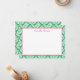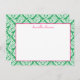 Damask Pattern Pink and Green Personalized Flat Note Card