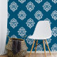 A handmade damask design wallpaper in teal blue.