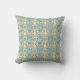 Damask robins egg blue old world creamy pillow, designed by Kristie Hubler, has an old world style damask design, repeated pattern on front, single on back, with an aqua, teal blue graphic damask motif, and creamy yellow peach gold background.