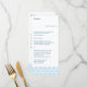 Simplicity is key on this damask design menu card. Light and dark blue typography blends with a light blue damask border on the bottom. The event name is highlighted at the top of the page. Add a customized menu underneath. Double sided to add a kid's menu on the back.