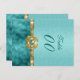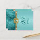 “Table numbering”, “table placement” or “table number cards” with customizable text templates. DESIGN – This flat card has a beautiful vibrant pastel blue and teal, damask infused, faux suede background, which is divided by a gemstone encrusted gold chain with diamonds and peals inlaid into the metal. CUSTOMIZE IT – Change the monogram to your own, add any wording of your choice and feel free to change the color of the background too, by using the “customize it” button. IDEAL FOR – Wedding, “bridal shower”, anniversary, birthday, prom, graduation, “sweet sixteen”, quinceanera and corporate formal events, functions, gatherings and parties, for use as “table numbering” cards for placement of guests at their respective tables . COMPLIMENTING RANGE OF PRODUCTS – See the full range below. COLORS AVAILABLE – Visit our mensgifts store to view the full range of luxurious colors in this design – http://www.zazzle.com/mensgifts* CUSTOM REQUESTS – If you would like this design on another product, or would like to discuss any changes you may require, please feel free to contact me on clientrequestrw@gmail.com and we can discuss your requirements, and costs, if any apply.