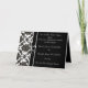 Royal Black Damask Wedding RSVP Response Cards Shown with the beautiful paper color showing which is felt - you choose background color from almost 200 colors and papers which alter the colors so click on customize and create your one of a kind invitation! shown with coral and lilac fonts - you choose colors in fonts as well - if you would like a glossy finish (glossy on front side only) order the basic, linen or metallic papers - for a matte finish order recycled, felt or speckled.