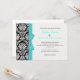 Damask With Turquoise Bow Wedding Invitation