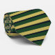 Stand out and look classy at the same time with this gold, green, and navy blue rugby-stripe tie.