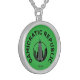 I chose gold plated so that the metal would not react with my skin oils and perspiration. But, I changed the necklace from the gold plated one to a sterling silver. My skin cells will tarnish the silver. But it will not look as bad if some portion of the gold plated necklace somehow became compromised. Zazzle did a find job turning the picture into a pendant for me. As you can see, the colors and the printing of the final product, match the preview. The picture I took is not very clear. But I am pleased with the product I received.