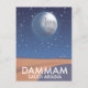 Beautiful Dammam Saudi Arabia, vintage style Travel poster of the moon setting over the landscape.