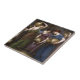 This custom fine art tile features a high-resolution, stunningly colorful reproduction of The Danaides by John William Waterhouse, oil on canvas, 1903. This classic Pre-Raphaelite painting depicts a procession of women carrying and pouring large urns of water into a basin from which water pours from the bottom. Waterhouse paints the scene with a near classical sense of low relief under a patina of deep, rich color, particularly the deep ultramarine blue robes. The Danaides in classical mythology were the daughters of Danaus who were forced to marry the sons of Aegyptus, a mythical king of Egypt. The daughters rebelled, and as punishment, the gods condemned them to the underworld of Tartarus, where they eternally pour water into a perforated basin, a classical symbol of futility. The Waterhouse tile is a distinctive addition to the home decor of any art lover or fan of Pre-Raphaelite painting.