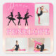 This personalized design features a pink background with a glittery effect, perfect for a ballerinas. It showcases 3 silhouettes of a dancer performing a variety of dance skills, surrounded by the word "Dance" in a stylish script font. Customize it with your child's name which will be prominently displayed in bold letters, adding a personalized touch. As an extra special bonus you can upload your 3 favorite photos of your ballet dancer to make this gift truly hers! This item is such a thoughtful gift for your ballerina and truly helps her celebrate her talent and dedication to the sport.