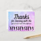 Send out this Dance Birthday Party Thank You Postcard to all who partied and shimmed with you. It features a sparkling blue and purple bokeh background accented with silhouette dancers. The message 'Thanks for dancing with me. Your presence made all the difference' is on the front.