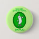 Funny design features a tortured-looking dancing pickle with a dangerously-shrinking lit birthday candle on his head. Text reads, "Dance, birthday pickle, dance!" Green background with ink pen cartoon.