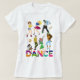 Colorful word Dance and cartoon images of young male and female dancers. A cat is also dancing, another cat rapidly runs to join him to dance together. A funny and positive t-shirt for anyone. A good birthday gift. Do not forget to choose another style, size, color, and gender of the apparel. You can transfer this design to another product, in particular: a tote bag, trucker hat, apron, button, reusable grocery bat, panel t-shirt, and all-over printed tank. Use the "Edit Design" button to reposition the image on the product. Show off your unmatched style when you go outside. Just buy one, and be happy!