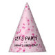 Add pizazz to your dance party with these pink and black party hats. All text is customizable. Part of a collection from Parcel Studios.