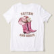 Dance, Laugh, Repeat, Rhythm and Boots Tri-Blend Shirt. Step into style with this fun and lively country western line dance t-shirt. The front left side displays the motivating phrase - Dance. Laugh. Repeat. - while the back showcases pink cowboy boots and a hat adorned with a light beige flower, along with the words - Rhythm and Boots in a cowboy typeface font. Perfect for line-dance enthusiasts, this shirt combines country charm and rhythm for a look that's ready to hit the dance floor.