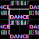 The words Dance Like You Mean It in neon colors on black fabric