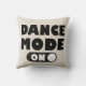 Pillows are a fun way to add a spark of life to any home or office decor. This fun pillow features the quote "Dance Mode One" with a cute black and white on action button highlighted against a neutral light gray / tan background.
