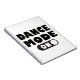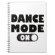This fun dancing notebook features the quote "Dance Mode One" with a cute black and white on action button highlighted against a crisp white background.