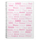 This adorable notebook is sure to delight any dancer! Dance is displayed in many stylish fonts, all beautifully arranged in pink against a white background.