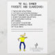 Dance teachers - remind your dance parents and legal guardians to tone down the fanaticism and curb their enthusiasm for their dance students with those flyers - ready to be stapled into dance studio handbooks! With some text customizable, they'll let them know that going professional doesn't matter to kids' dance education. The enjoyment of the art form and the benefits that completely don't have to do with dancing on a cruise ship, with a hip-hop crew, in a theatrical production, or with a ballet company REALLY does. Please customize the text in all caps. White background. Features dancing boy with banana head.