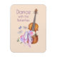 An inspirational saying: Dance with the Butterflies with a soft feminine design. Illustrated with a watercolor image of a wooden violin, some pink ballet slippers resting against it and decorated with flowers and butterflies. Set on a peach pink colored background.