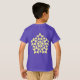 Fun, unique shirt to express how much you love dancing. On the front, yellow lettering spells out the word "dance" and forms the shape of a dancing figure. The back of the shirt is adorned with a star design to reflect your superstar status. Shown here on a purple shirt but works great on other dark colors as well.
