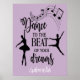Dance to the beat of your dreams wall poster. You can choose any color background you prefer. Personalize with a girls' name. This is great for a teen girls room too.
