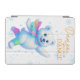 I was super excited when I got my cover in. It is attached by a magnet across the edge. I don’t think it will be very protective but it is very cute. I’m going to keep my iPad in a sleeve and use this face cover while I have it out. It folds to create a tilt for better viewing and to keep the iPad at a slight angle for typing. The colors are bright and it is fun. I’ve really enjoyed it. The personalization looks like amazing. It is the same color as the picture and is the same brightness. Well done! Very nice.