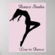A beautiful silhouette of a dancer doing a parallel retire set against a pink background decorates a great dance gift. You can easily personalize it by adding your name, dance studio or text with the template.